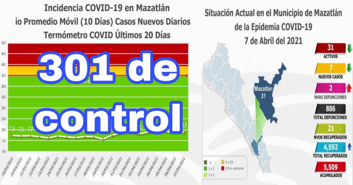 Cabe destacar que desde hace 301 días, Mazatlán ha mantenido un escenario controlado con pocos casos y bajo riesgo de contagio.