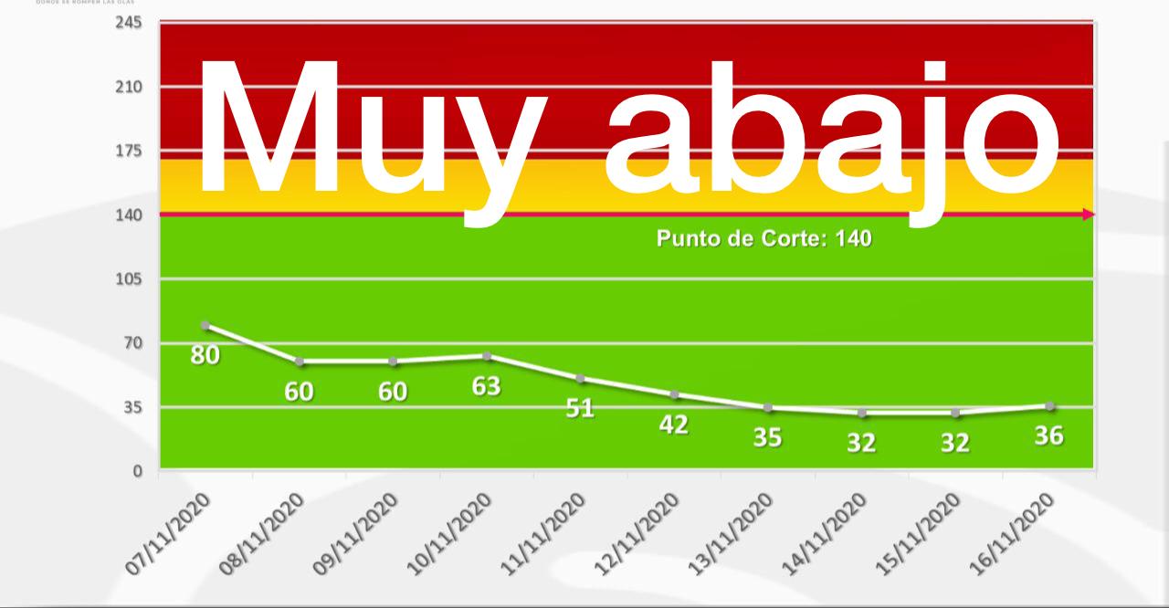 En el informe que presenta la Secretaría de Salud del Estado todos los indicadores registran un incremento debido a los retrasos que ocurren los fines de semana, sin embargo, aun cuando hay 15 nuevos casos, el Termómetro promediado de 10 días bajó a 7.7 grados.